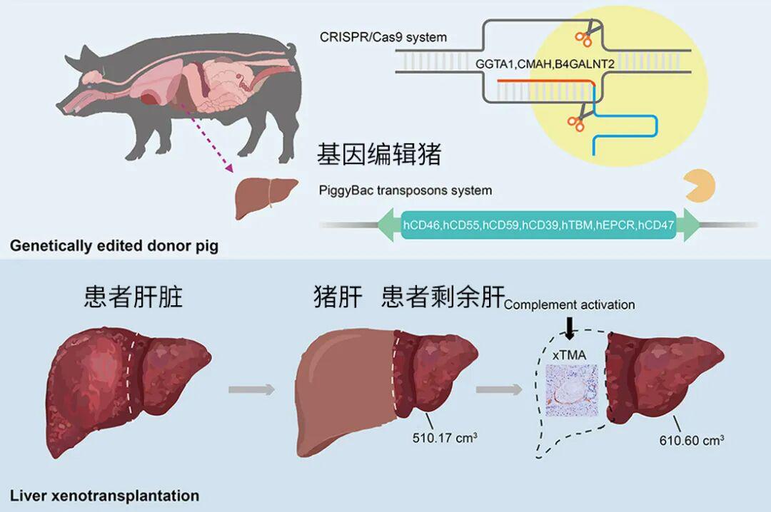 中国每年有数十万人经历肝功能衰竭,有时肝移植是唯一有效治疗方法,但2022年只有约6000人接受了肝移植,很多患者因为等不到人类供肝而失去生命。基因编辑猪的肝脏不受供体数量限制,被认为是缓解移植器官短缺的潜在途径。