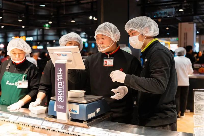 门店取消强制动线,进行货架降高、通道拓宽、照明升级等调改,增设顾客休息区,配备便民设备;门店提供海鲜打氧清洗、肉类切丝切片等加工服务,更为不少商品细致地标注了挑选提示及食用顺序等细节,致力于在细微之处传递国民品质超市的温度。