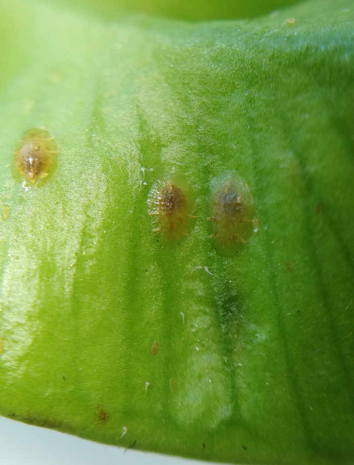 介壳虫和粉蚧属于同一类害虫,同样难以清除干净,其背部有一层蜡质外壳,常附着在植物的叶片和茎干上,外形像一个个坚硬的小凸起,平时基本不移动。有些花友不认识这种害虫,等发现时,植株可能已经快要枯萎了。