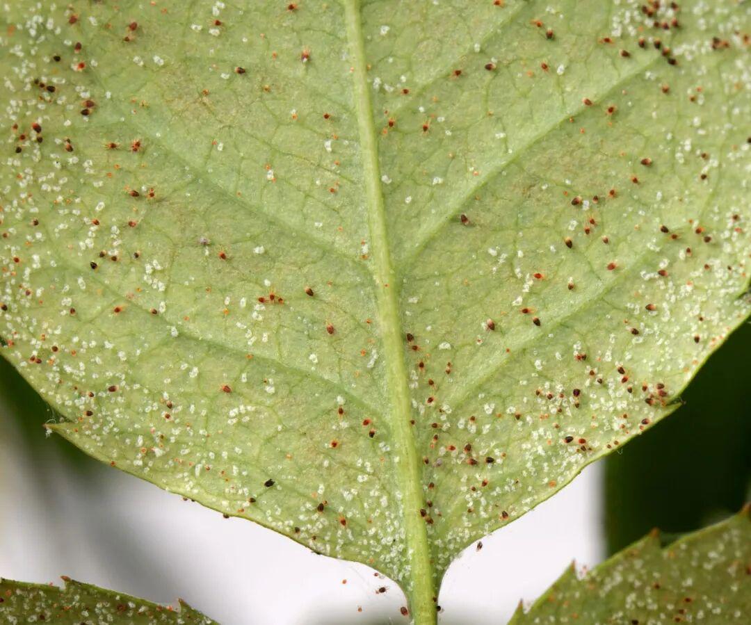 检测红蜘蛛有个简单方法:在叶片下方放一张白纸,轻轻晃动叶片,若纸上出现慢慢移动的小点点,基本就是红蜘蛛;将这些小点压扁,还会留下绿色痕迹。