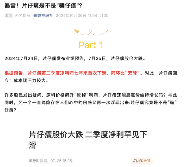 我看了一下文章结尾,写着:片仔癀授权发布。
