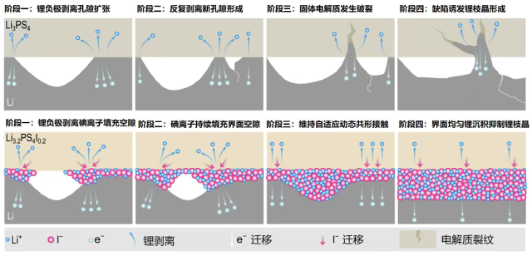 一种“全固态金属锂电池”,通过在电解质中引入碘离子,形成“富碘界面” 自动填充缝隙。